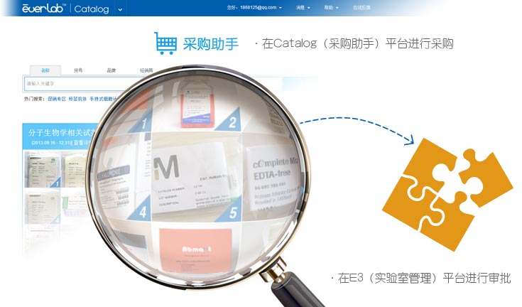 Catalog采购助手旨在解决科研人员进行实验试剂、耗材、仪器的产品购买过程繁琐的问题。通过它可以快速的获得产品信息、价格对比,厂商官方代理商等信息并能够实现一键购买,生成实验室订单。使实验室科研工作者能够更加快捷、高效的购买到安全、有保障的商品? 开始使?i class="arrow-r">
